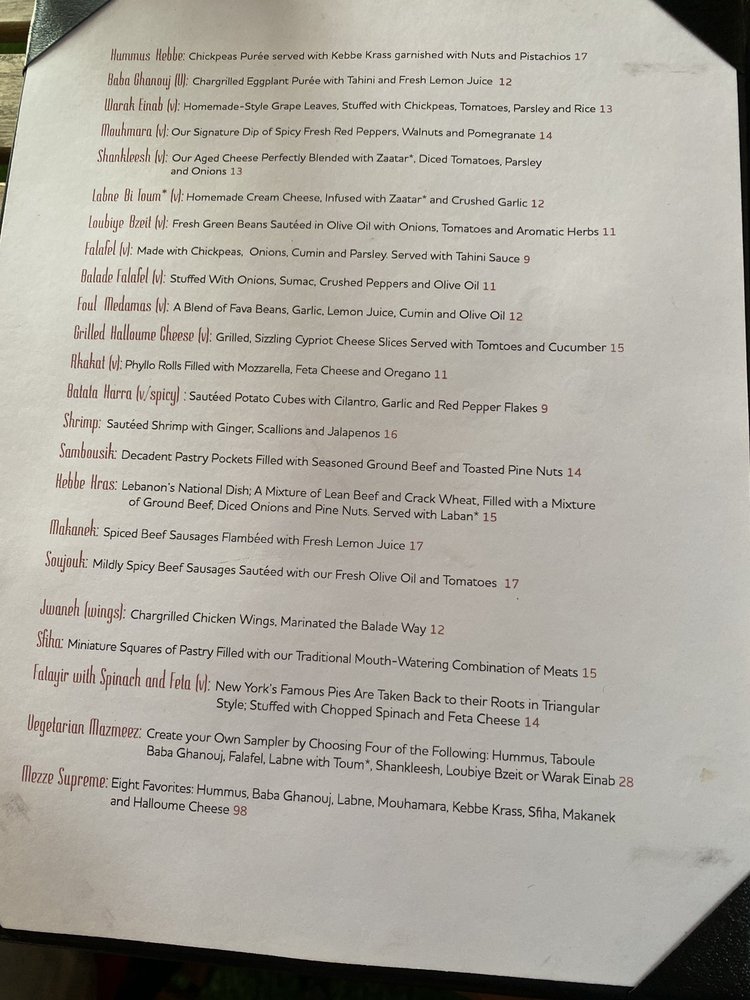 Balade, a Lebanese falafel restaurant in New York City, offers a wide range of options for both vegans and vegetarians. With a casual, cozy ambiance and friendly staff, Balade is a popular spot for groups and families. The menu boasts traditional Mediterranean dishes with a unique twist, such as the mixte grill and beef kafta platter. Customers rave about the freshness and quality of the food, particularly highlighting the lentil soup, fatayir, loubiye bzeit, baba ghanouj, fafet shrimp, and warak einab. The restaurant also offers a variety of kabob combos and mezze platters, showcasing the diverse flavors of Lebanese cuisine. Balade's attention to detail and welcoming atmosphere make it a must-visit for those craving authentic Middle Eastern flavors.